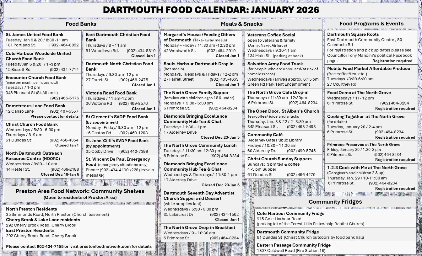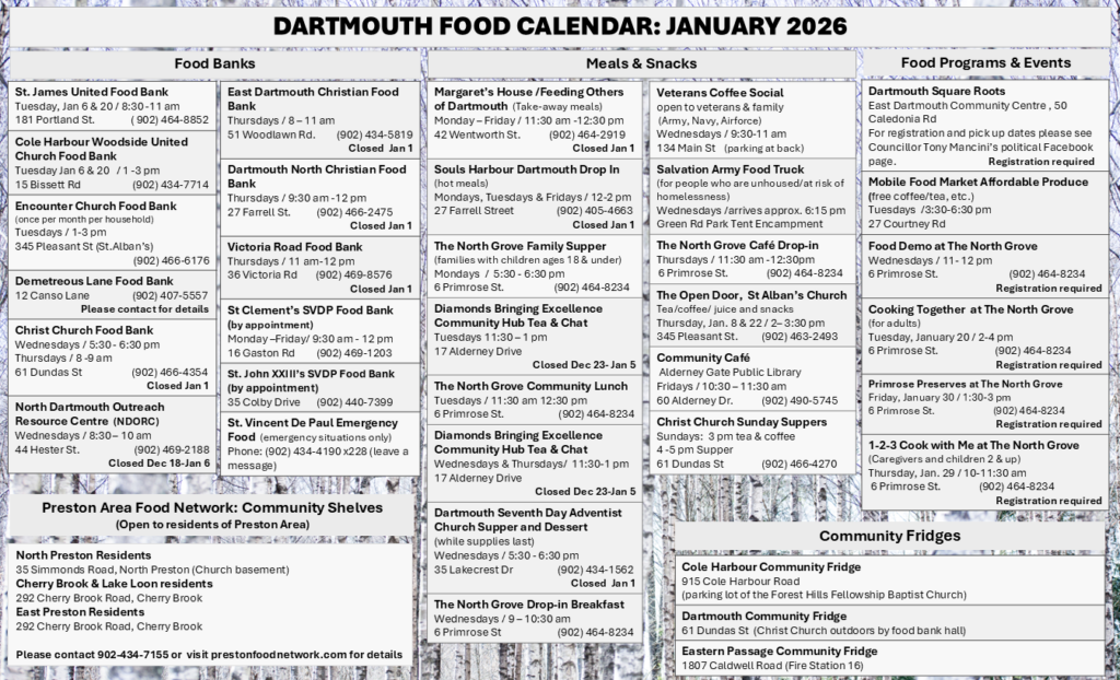 Food banks, free meals, and warm drinks in Dartmouth – Cole Harbour